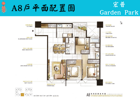A8及B7為單面採光的三房,規劃36坪,其中一間臥室開窗在後陽台天井位置,主臥室衛浴也是標準四件套配備。
